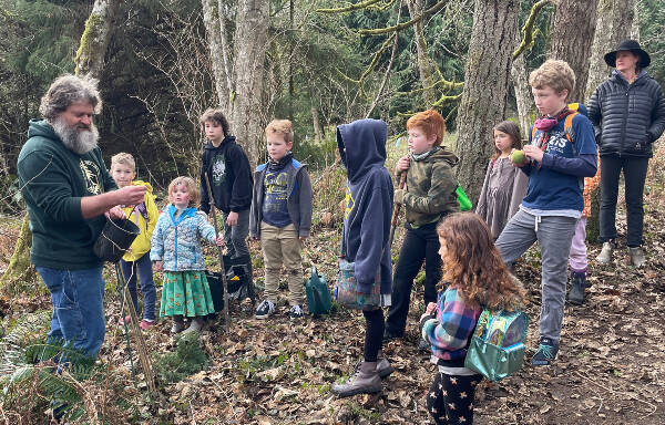 Hans Youngmann, an arborist and founder of the Big Ol’ Vashon Tree Love Society, showed members of Vashon’s Cub Scout Pack 275 how to plant an alder seedling on a tree tour of the Judd Creek Trail — an outing by the Cub Scouts that took place on Feb. 12.