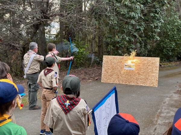 With the release of an Arrow of Light, a glowing spark signifies each Cub Scout becoming a new member of the Scouts BSA Troop 294 on Vashon Island.