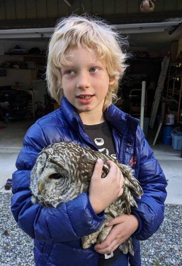 One day after being held by the Simmons children, the owl was taken to the Progressive Animal Welfare Society, in Lynnwood, for medical care. He is still being cared for at the facility, and recovering.