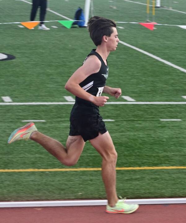 His record time was 9 minutes, 13 seconds. In this eight-lap endurance race, Thomas tucked in behind Reid Headrick from Medical Lake and both runners pushed the pace and each other and put a little distance between them and Andrew Luce, the third-place finisher from Lynden Christian.
