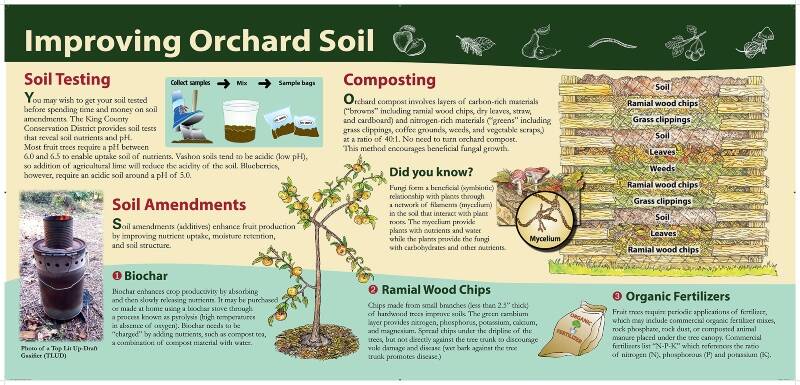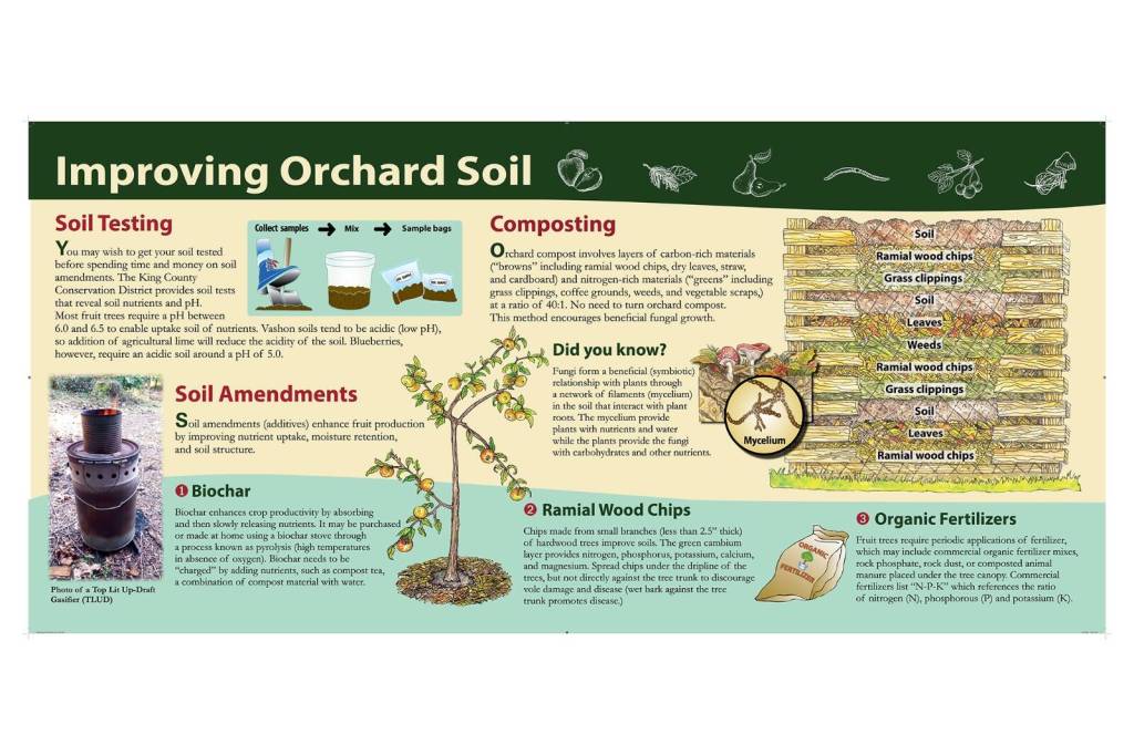 The Western Cascade Fruit Society provided most of the funding for the project, with additional funds from the Vashon Island Fruit Club and Fruit Club member Tracy Barrett. Local graphic artists Sandra Noel and Annie Brulé designed several of the signs, and Fruit Club member Russ Carey designed the remainder of the signs.
