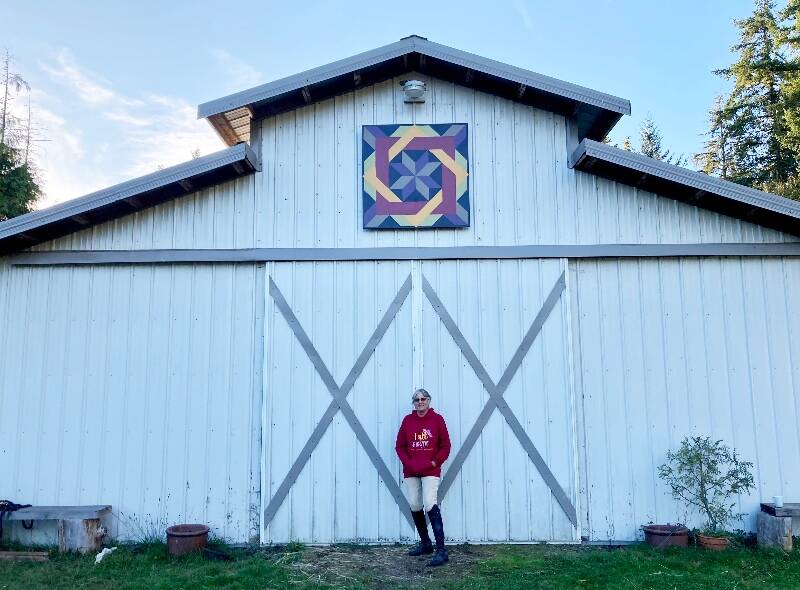 Chambers spotted her first barn quilt — a quilt pattern painted directly onto an outdoor building or painted on a piece of wood and mounted there — from a car window. She and her family were driving across the state when, near Ellensburg, her eye caught a blur of bold color and she noticed a quilt hung on a barn at the edge of a distant hay field.