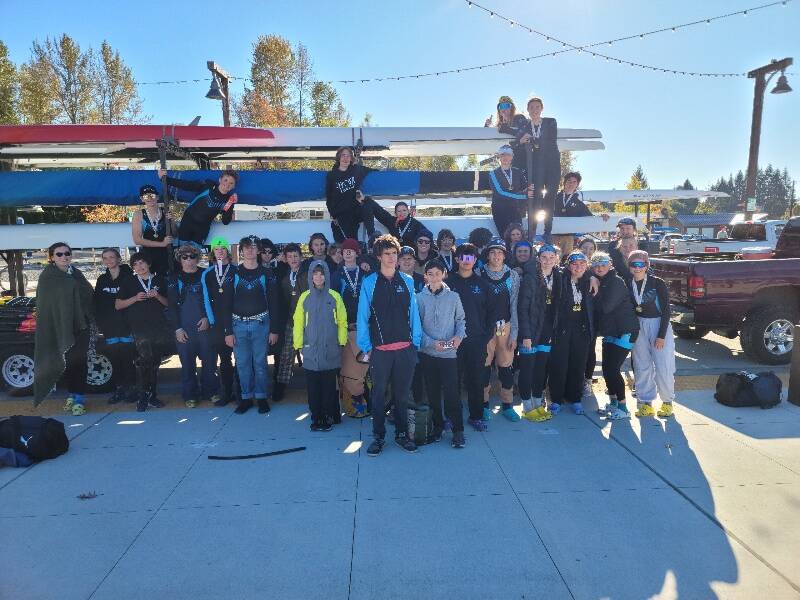 “This was our first time going to the Head of the Bull Trout regatta — the park was beautiful and the weather was great. It was a really fun way to wrap up the fall season for the novice rowers,” said head coach Ben Steele. “We were lucky to have many of our families there supporting us and staying flexible with last minute changes due to injuries and illness affecting some of the boat lineups.”