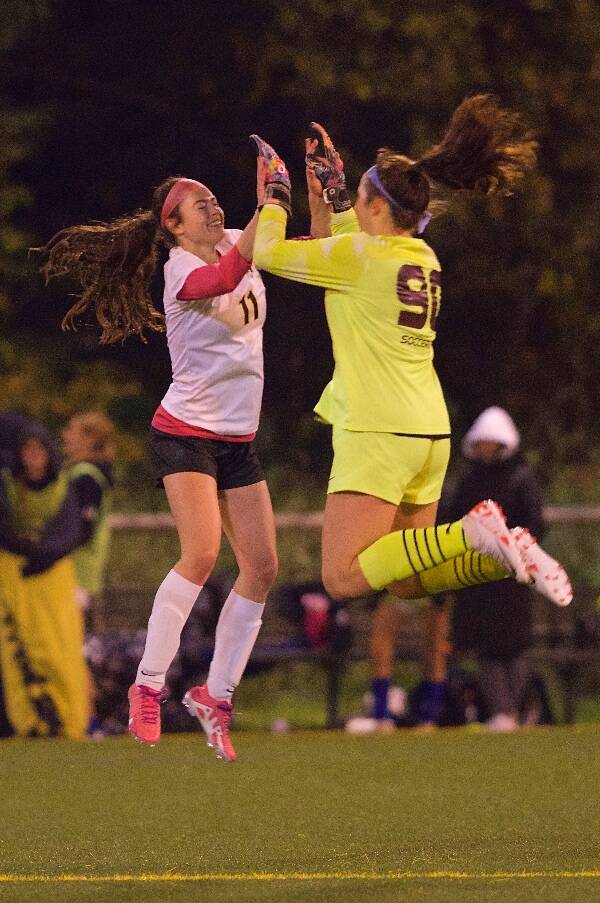 The team followed that with a 3-1 win over Cascade Christian on Oct. 28, in a match that featured a bevy of seniors finishing their high school careers with gusto and dazzling play. In the 29th minute of the first half, Linnea Heuschert sent a masterful corner kick into the scrum in front of the net, finding Kate Spranger’s head rising above the pack to send the ball into the back corner of the net.
