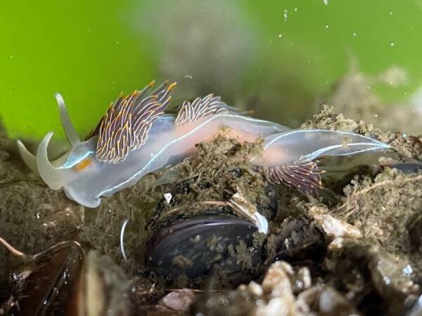 These minute nudibranchs (only 11 millimeters long) are adorned with stalks of waving “pom poms” that make them look like exotic confections.