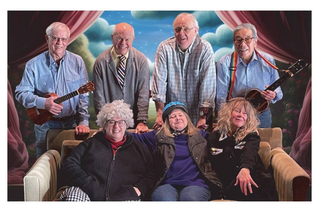 The play — complete with ukulele-playing parts claimed by Joe Okimoto and Bill Kirschner — has a cast made up entirely of Vashon actors and musicians in their 70s and 80s, an ensemble Okimoto (who is 81) has dubbed “The Golden Oldies Players.”