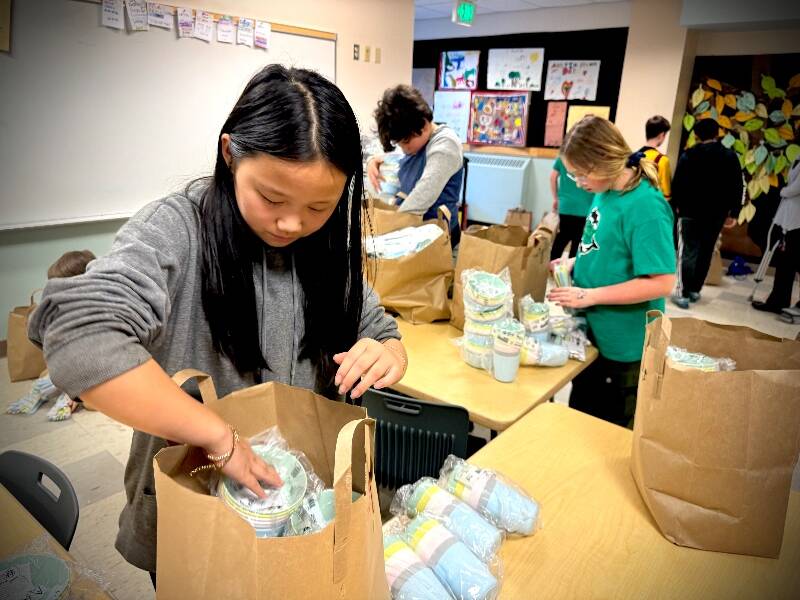 The purchase was made with the Appleford Grant — a funding request written by the students and awarded to the Green Team from PIE (Partners in Education.) The sets will be given to each classroom to reduce waste and save money by eliminating the need for disposable plates and plastic utensils at class parties and other occasions.