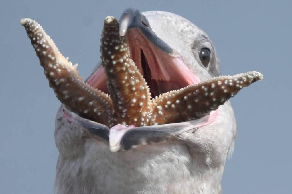 Island photographer Jim Diers won the Seattle Times’ 2023 Reader’s Lens photo of the year last month for his photo of a voracious gull sending an entire sea star down its hatch.
