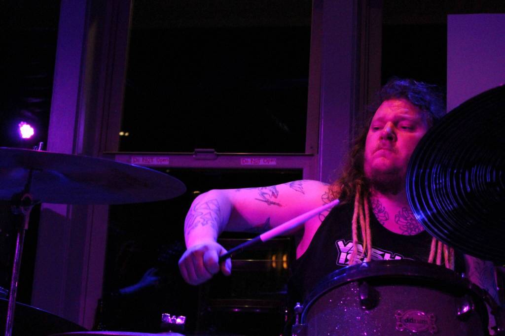 Gloom Gazer drummer Dexter Casper Excalibur Oakenshield assisted in organizing the concert, which packed Sporty’s with an lively crowd of leather-wearing punks, dancing kids, school-aged youngsters and bar regulars.