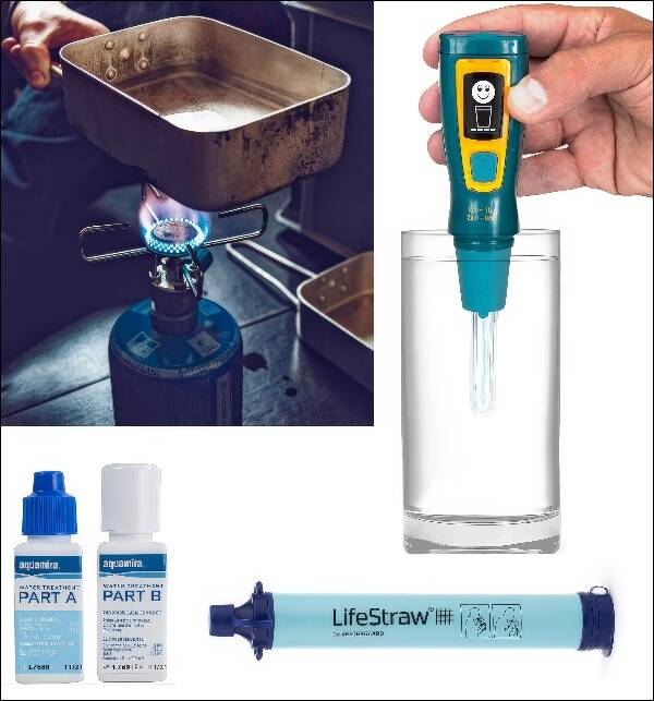 LifeStraw, Katadyn, Sawyer, and others make purifying filters. You can get purifying filters in many sizes to produce enough water for one person or an entire family. There’s no waiting after using a purifying filter, unlike other water treatment methods. Also, a filter gets rid of dirt or other contaminating particles as an intrinsic part of the treatment process.