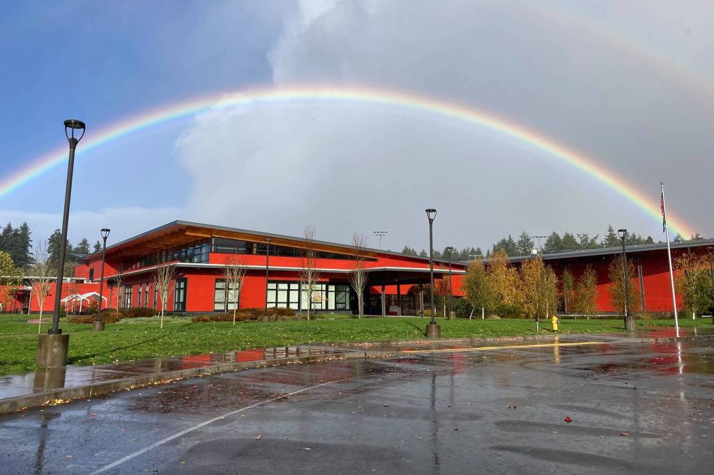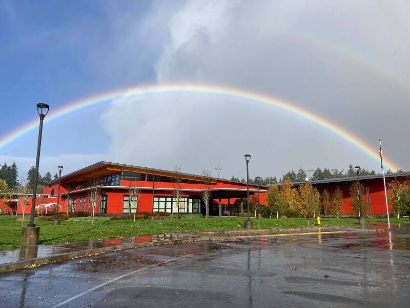 Vashon High School, sitting pretty under a double rainbow in 2021 (Courtesy Photo).
