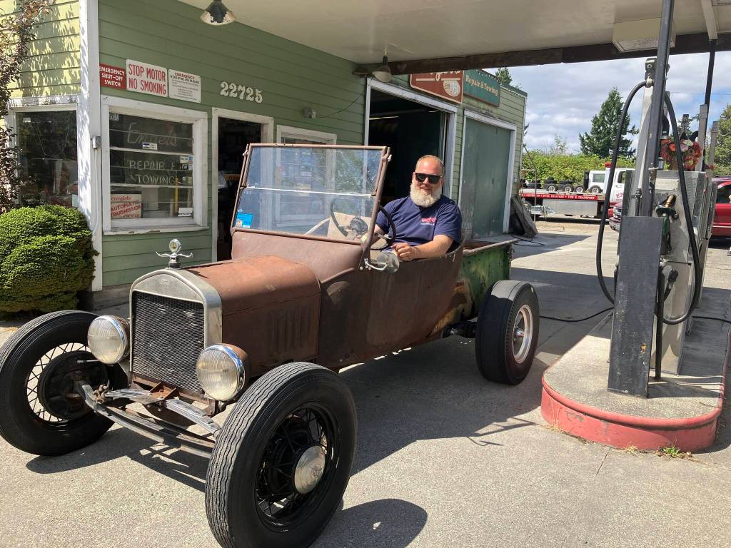 Ryan Daschofsky, in his reconstructed, hot rod Ford Model T.