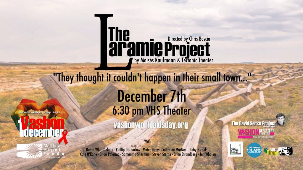 A host of organizers and activists have partnered to present the events. They include Vashon World AIDS Day and The David Serko Project, the Matthew Shepard Foundation, Not On Our Island, Take a Stand Theatre, Vashon Repertory Theatre, Vashon Island Film Institute, and the Vashon Island School District.