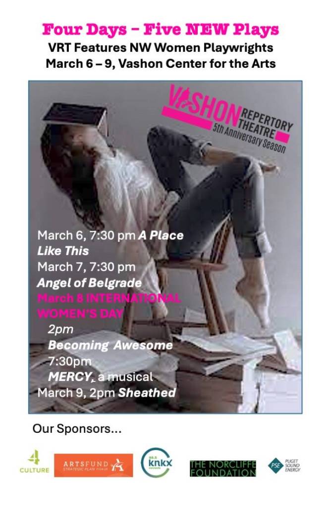 Vashon Repertory Theatre (VRT) will celebrate Northwest women playwrights in early March with a series of five play readings in its fifth annual Incubator Series of new plays.