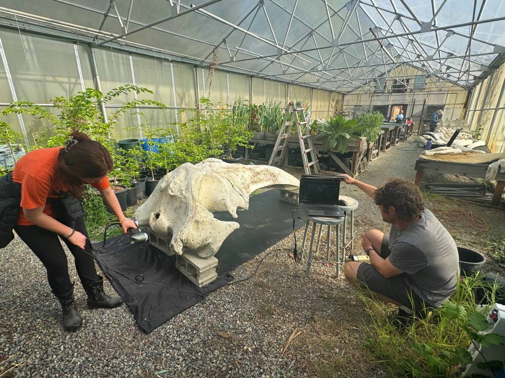 This summer, the bones will be moved outside to cure in the sun. In the fall, work will begin on rebuilding the skeleton, with help from metal workers and possibly a few excited students. The full mount will involve drilling, bracketing and careful engineering, and island metal artist Ela Lamblin will direct the design and fabrication.