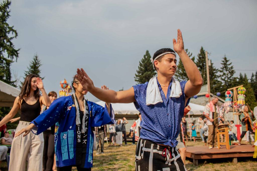 A community Bon Odori folk dance, like the one seen here at Mukai Farm & Garden’s 2024 Japan Festival, will take place at the Kizoku Ishiki Obon celebration at Vashon Cemetery. (Alex Bruell photo)