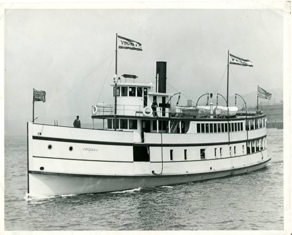 The West Pass Transportation Company went out of business in 1942. The Virginia V briefly made the Seattle-Fort Worden (Port Townsend) run, then was moved to the Columbia River to make the Portland-Astoria run. Later, she returned to Puget Sound and served during World War II carrying war workers between Seattle and the Keyport Naval Torpedo Station.