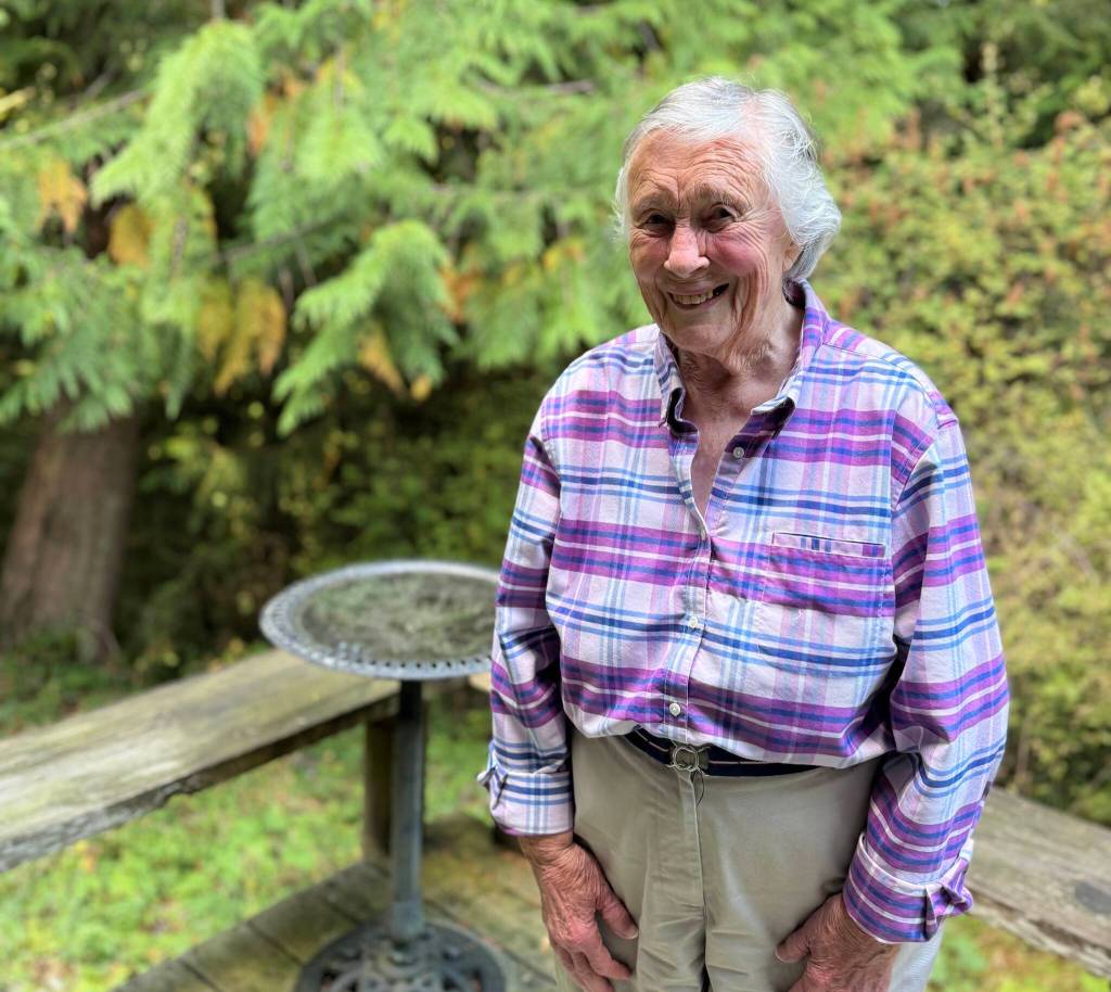 Among these stalwart rain-lovers is Yvonne Kuperberg, who is beginning her 27th year as a salmon watcher during her 100th year on Earth. This upcoming birthday milestone doesn’t faze the longtime islander, who has volunteered for environmental efforts since she arrived on Vashon in 1979.