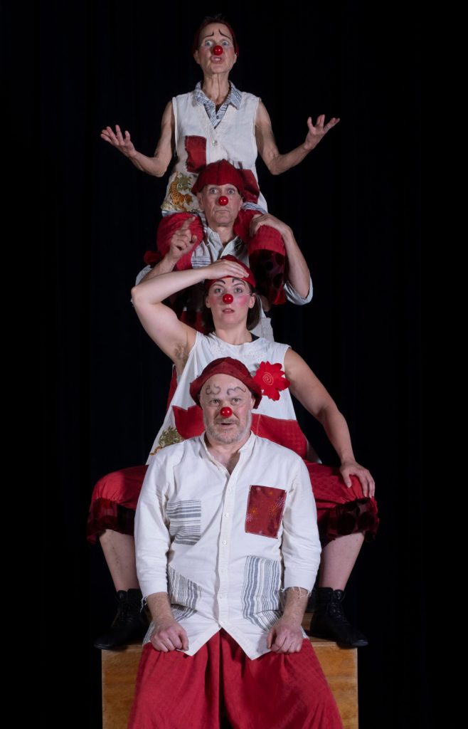 Inspired by teaching stories from various spiritual traditions, UMO’s red-nosed clowns deliver a series of parables with the ensemble’s signature humor and dynamic physicality in the show.