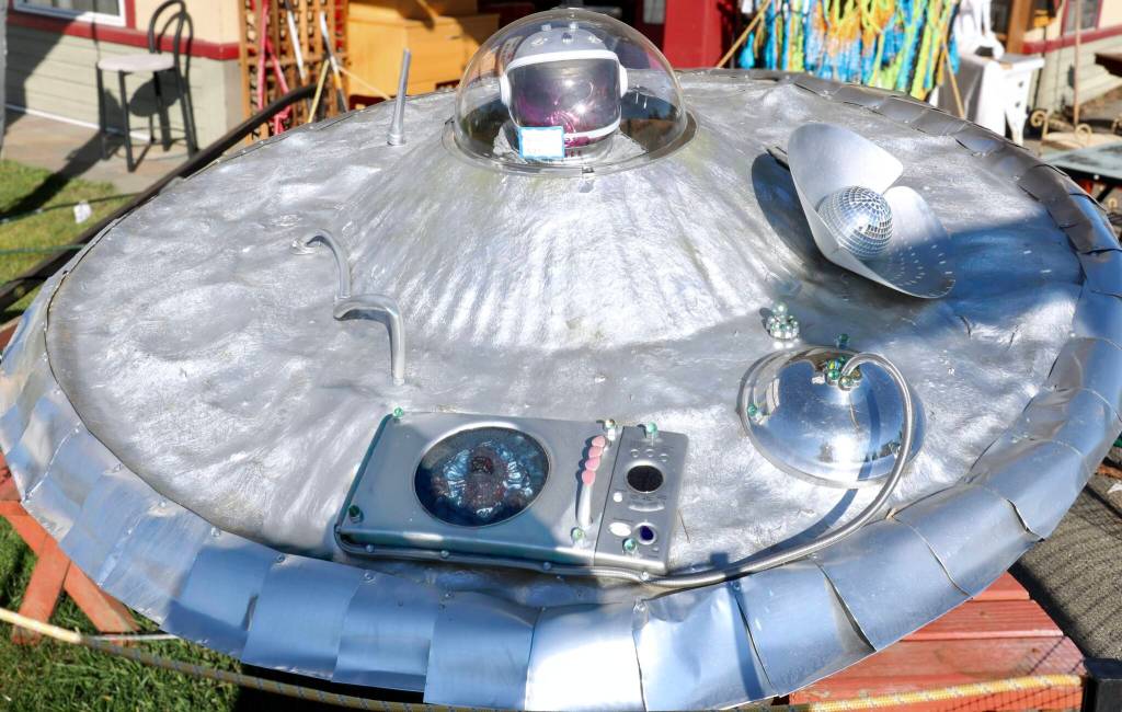 Inspired by the story, Beursken thought it would be fun to create a flying saucer every Halloween to display outside of his home, and even created one for Vashon’s Strawberry Festival a few years ago.