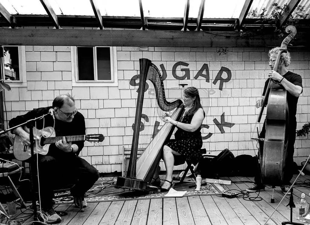 Immerse yourself in Vashon’s jazz scene Sunday, March 29 at 6:30 p.m. with a performance by Some’tet. The musical trio’s distinct sound blends west coast cool jazz with bursts of inventive energy, layered rhythms, and soulful vocals. The group includes Michael Whitmore on nylon string guitar, Patrick Christie on upright bass and Monica Schley on Harp, with guest musicians often featured. Some’tet has been performing at Durong since September 2023, where every week they weave together the elements of adventure, beauty, spirituality and soul that define their unique style.
