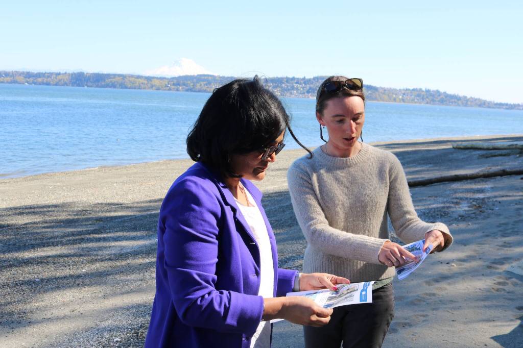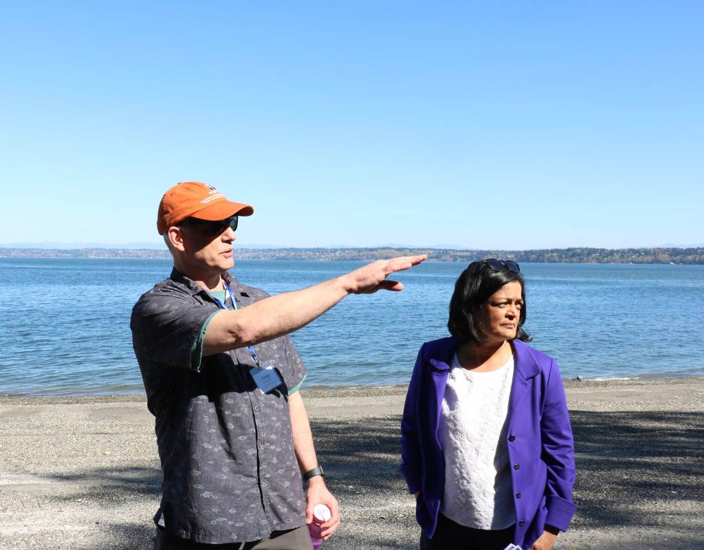 On a recent full-day visit to Vashon, U.S. Rep. Pramila Jayapal, D-Wash., met with community members and toured funded projects — including a stop at a sandy Maury shoreline where she spoke with officials about a data-collection effort set to receive $281,000 in federal funding.