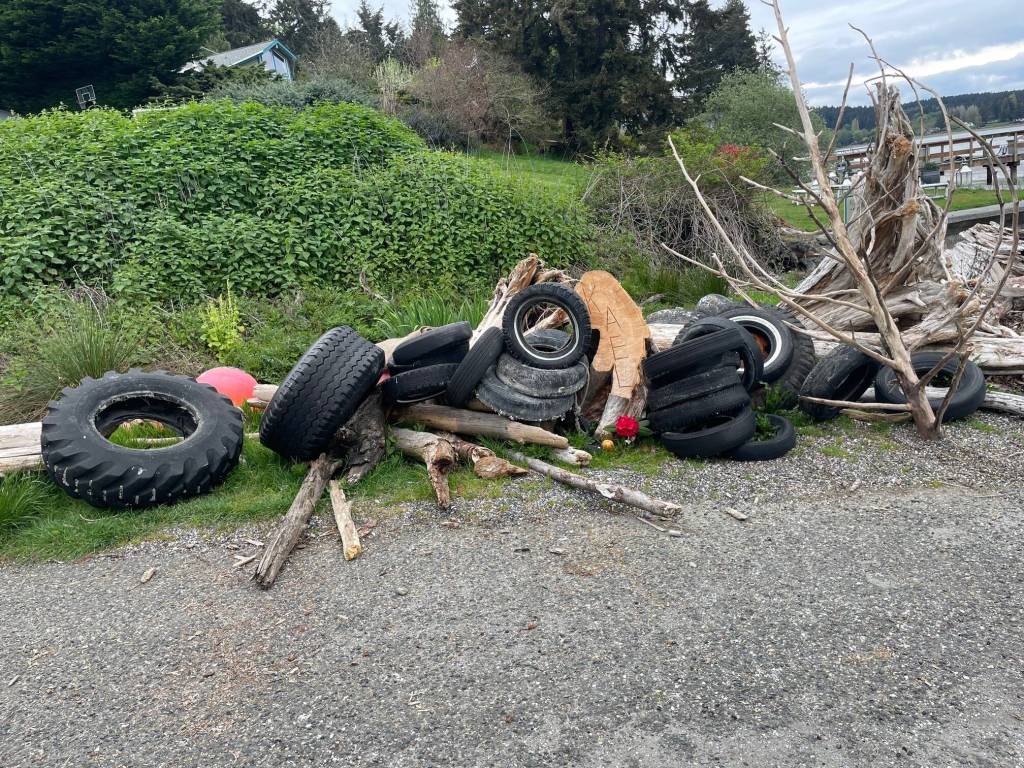 Volunteers with the Vashon Rotary Club, Zero Waste Vashon, the Harbor School and neighborhood activists have removed 22 passenger tires and four truck tires from Vashon beaches so far in 2026.
