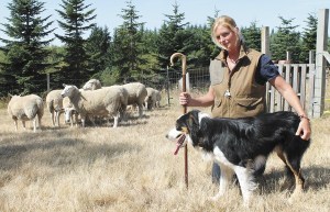 Islander Maggi McClure stood watch as her young border collie herded a flock of sheep down a field,…
