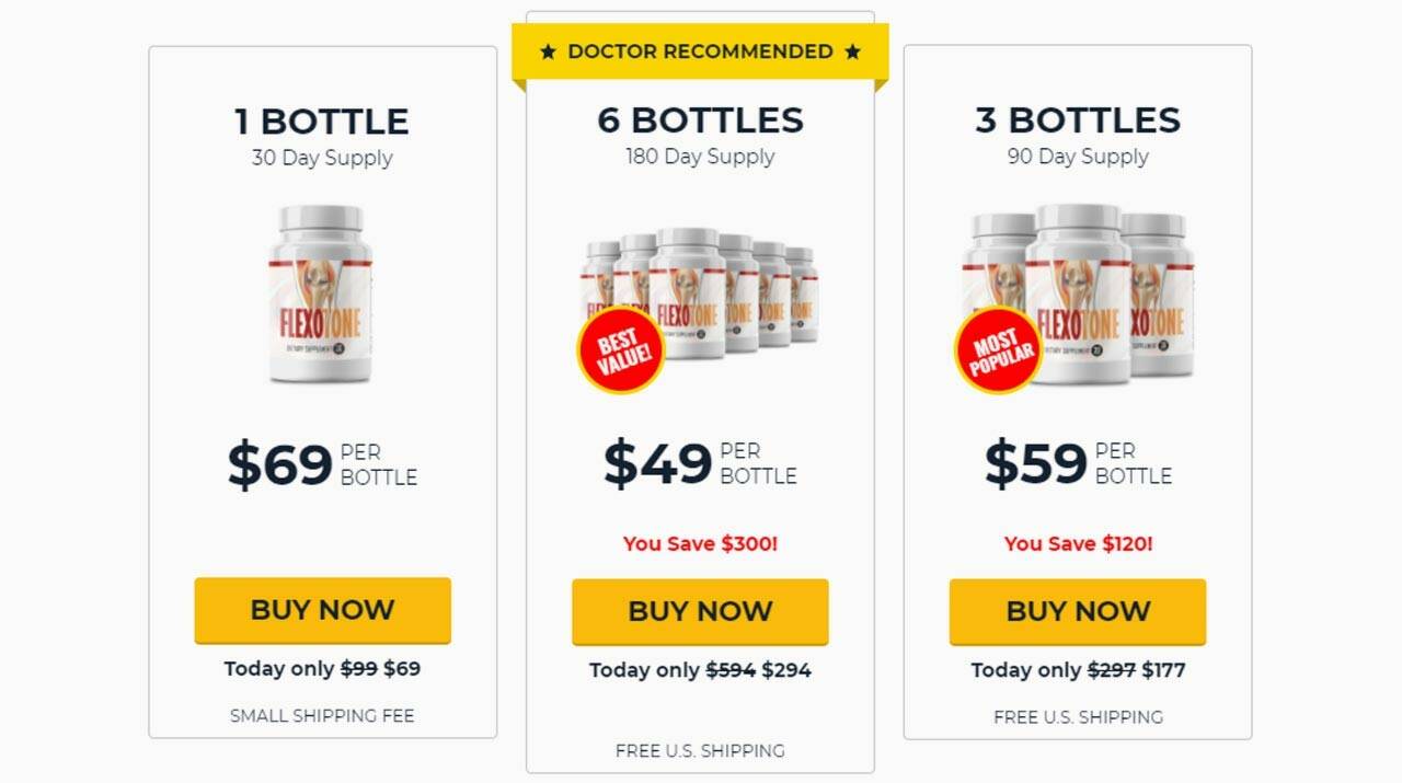 Here is the current pricing for Flexotone on the official website and the discount structure offered for taking more than one bottle.