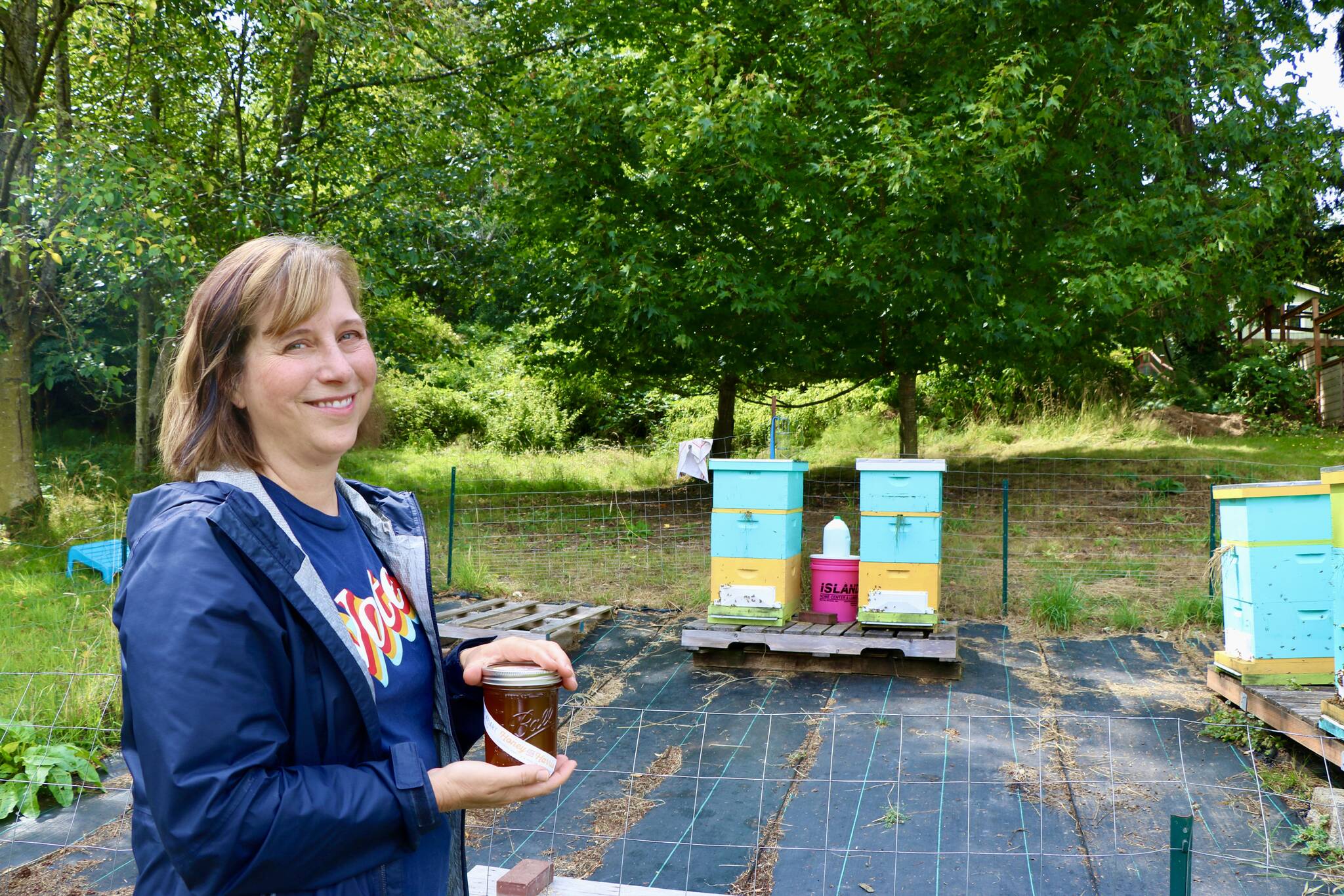 Riggs, a graphic designer, political activist, and Indivisible Vashon leadership team member, describes herself as just “one bee” in a hive working to make a difference on Vashon. She’s also the beekeeper behind Honey for Harris.