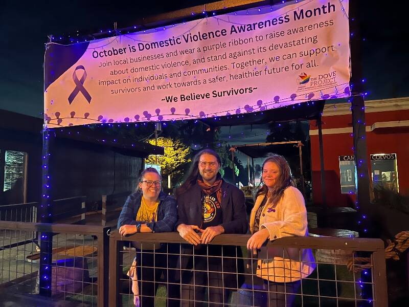Other businesses in town also have ribbons and smaller displays of purple lights — following the lead of Vashon’s nonprofit DOVE Project to raise awareness, believe and support survivors, and make a true commitment to helping to end domestic violence.