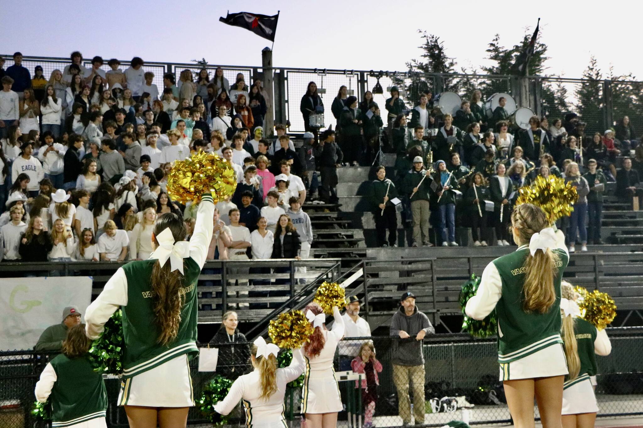 Vashon’s cheer program performs at pep rallies, amps up football crowds in the fall and hypes up basketball fans in the winter. It’s a challenging sport that demands strength, agility, tight timing and coordination among the girls, who lead cheers, perform stunts and learn choreographed dances together.
